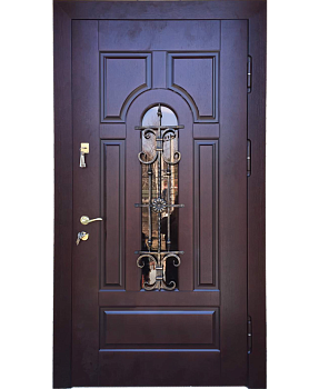 Входная железная дверь со стеклом и ковкой (с терморазрывом) CТ-2095